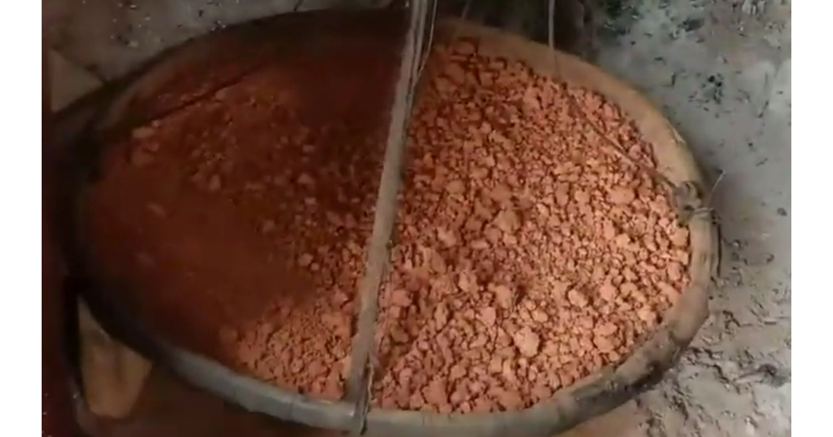 村にある神聖な井戸で水を汲み、蒸し上がった餅米によく煎ったごまをまぶして、竹の棒で粘りが出るまで突きあげて餅の完成です。